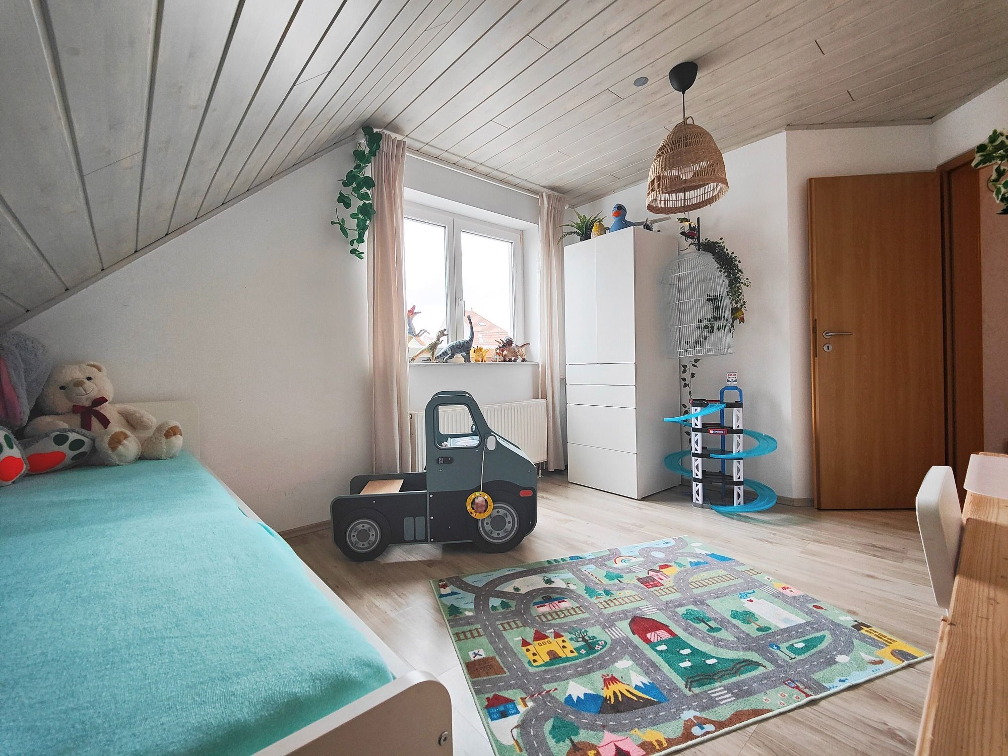 Ob Toben, Spielen, Ankommen oder Ausruhen – hier brummt das Leben. Auf dieser Ebene erwarten Sie zwei wunderbar helle Kinderzimmer, jeweils mit Blick zum Garten bzw. zur ruhigen Seite des Hauses. Die Räume sind freundlich, gut geschnitten und bieten viel Platz zum Spielen, Lernen und Träumen. Die modernen Laminatböden unterstreichen das gemütliche Wohngefühl zusätzlich.